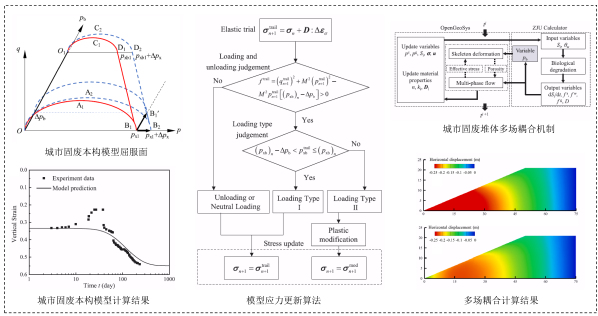 (1)城市固废本构模型及固废堆体多场耦合机制