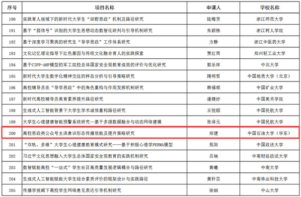 近日,教育部社会科学司公示了2025年度教育部人文社会科学研究一般项目立项结果,其中,高校辅导员研究专项任务项目共立项212项。ok138cn太阳集团古天乐辅导员郑健主持的《高校思政类公众号主流意识形态传播效能及提升策略研究》获评立项,这是我校今年唯一获批该项目,也是我院辅导员首次获得教育部层面研究项目。