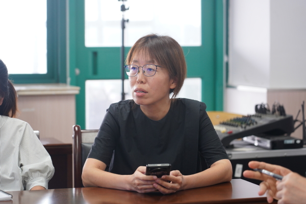 建筑2401班主任王灵芝作工作经验交流。她表示,从专业课教师到班主任,身份虽有不同,但职责相同,班主任工作不仅拉近了与学生的距离,也积累了丰富的育人经验,能有效地反哺教学工作。王灵芝以所带班级学生在 “挑战杯” 山东省大学生课外学术科技作品竞赛中斩获特等奖为例,分享了班主任在学生培养工作中的经验。王灵芝认为应加强专业内各班级之间的协同联动,深化师生交流,精准掌握学生思想动态、学习困惑与发展诉求,才能量身定制切实有效的教育培养方案。