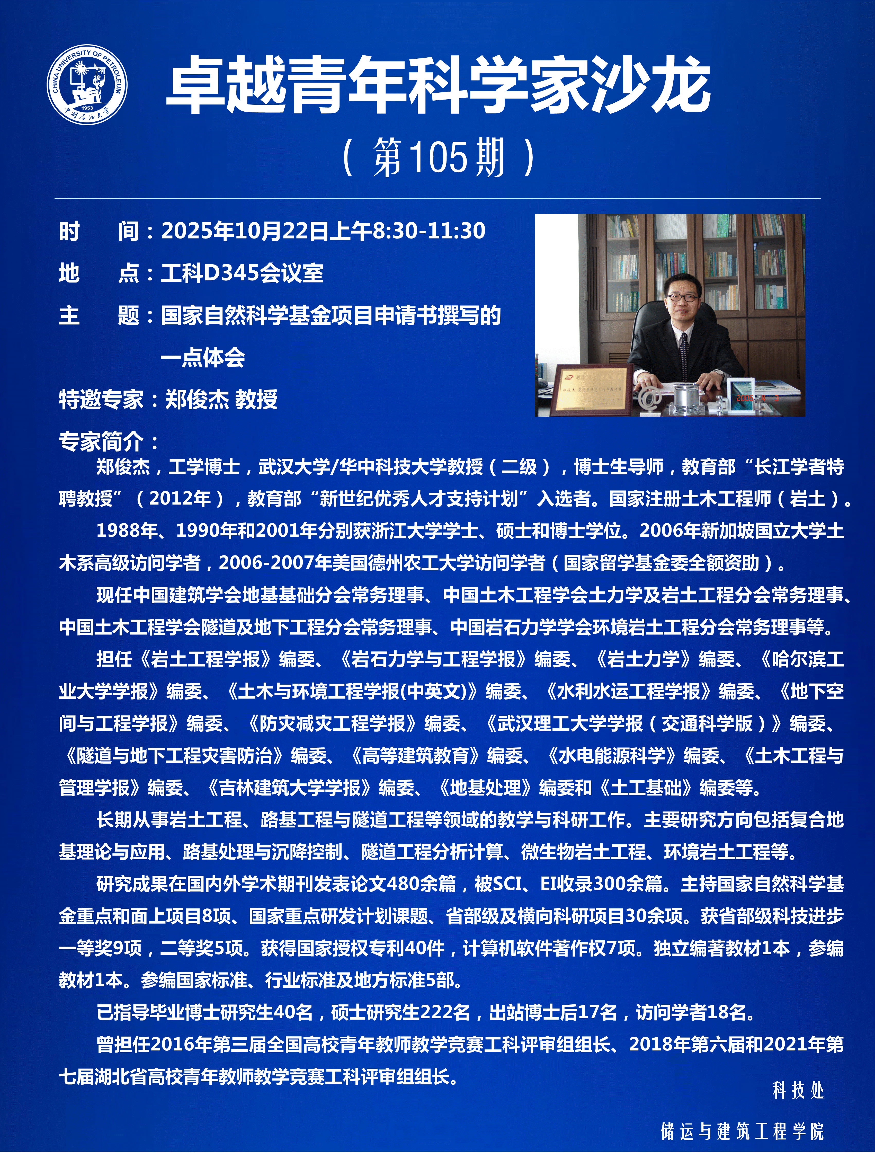 【学术动态】卓越青年科学家沙龙 (第105期)-国家自然科学基金项目申请书撰写的一点体会
