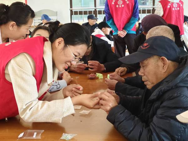 团员与老人共同进行手工活动 宋端艺摄