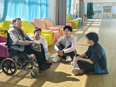 在青岛中康颐养院,团支部成员分为两组开展活动。第一组团支部成员推着半失能老人前往阳光房,与老人沐浴在温暖的阳光中,倾听老人讲述过去的故事。同时,团支部成员还准备了歌唱节目,《我和我的祖国》《大海航行靠舵手》等经典歌曲响起,勾起了老人对过去的回忆,赢得了掌声与赞扬。第二组团支部成员陪伴老人进行休闲活动。台球桌前,老人与团支部成员切磋球技,在球杆碰撞中,欢笑不断。