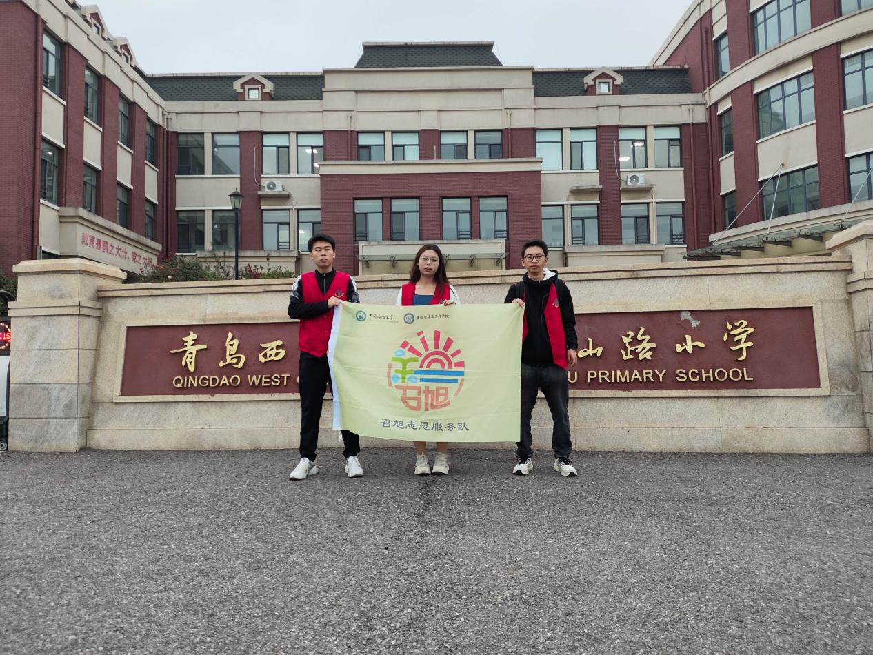 志愿者在小学门口合影 冯珺雯摄