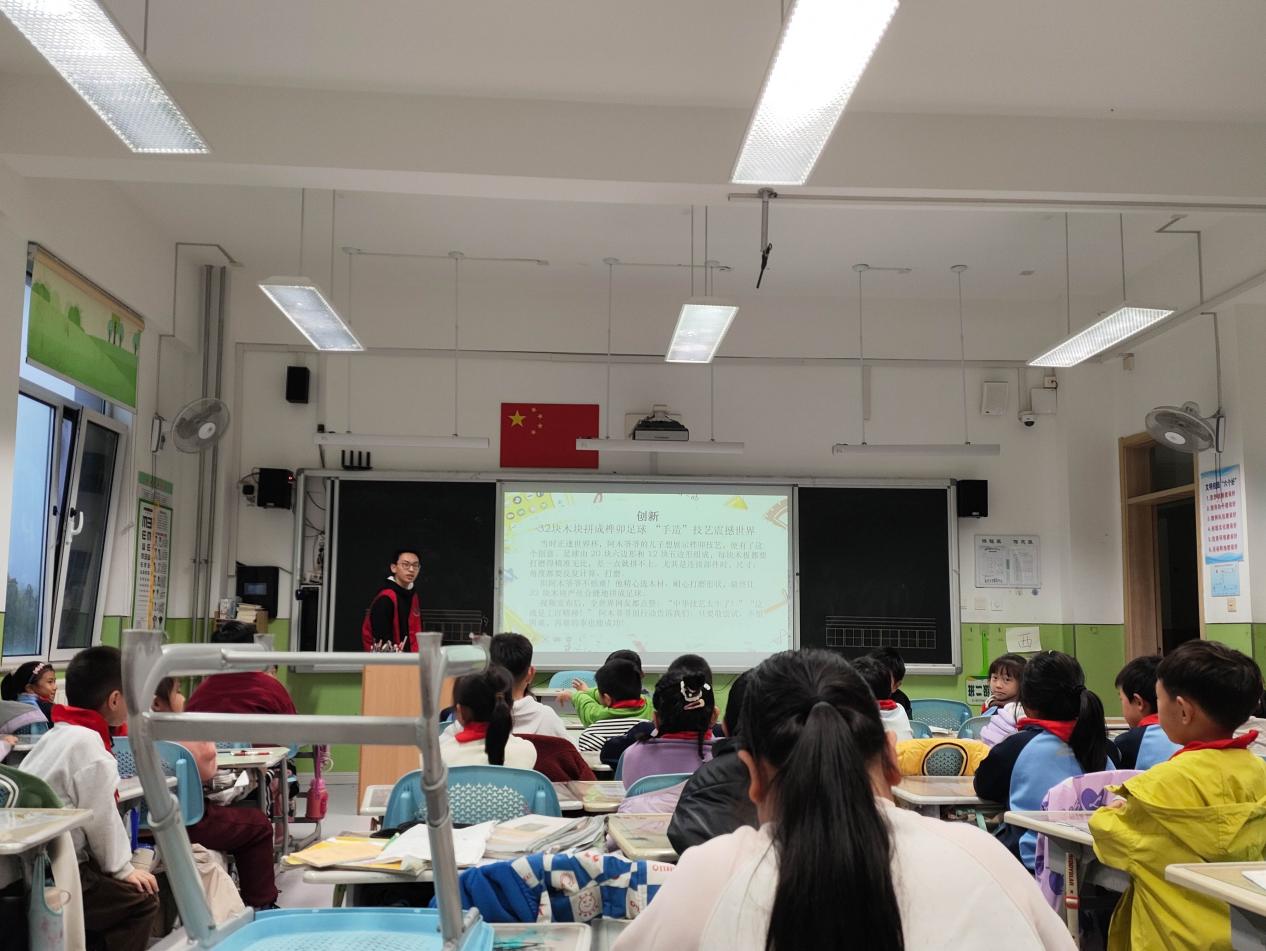 11月7日,昆仑山路小学教室内回荡着孩子们的欢声笑语。为传承中国传统建筑文化,提升学生对建筑艺术的认知与审美素养,召旭服务队以"榫卯"为主题,通过理论讲解与实践体验,带领学生探寻中国传统建筑技艺的千年智慧。