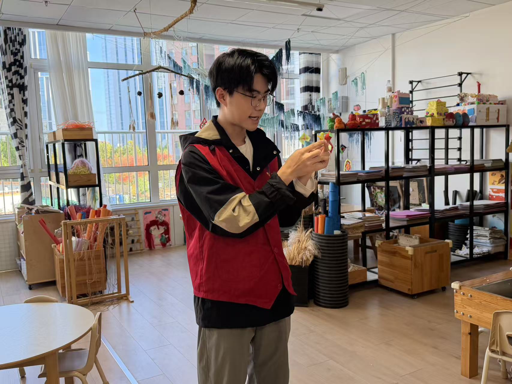 1126日下午,召旭服务队前往石油大学附属幼儿园开展彩泥人物制作活动。本次活动旨在通过手工制作激发幼儿的创造力和想象力,提升动手能力与审美素养,促进美育与劳育融合发展。活动在幼儿园活动教室举行。