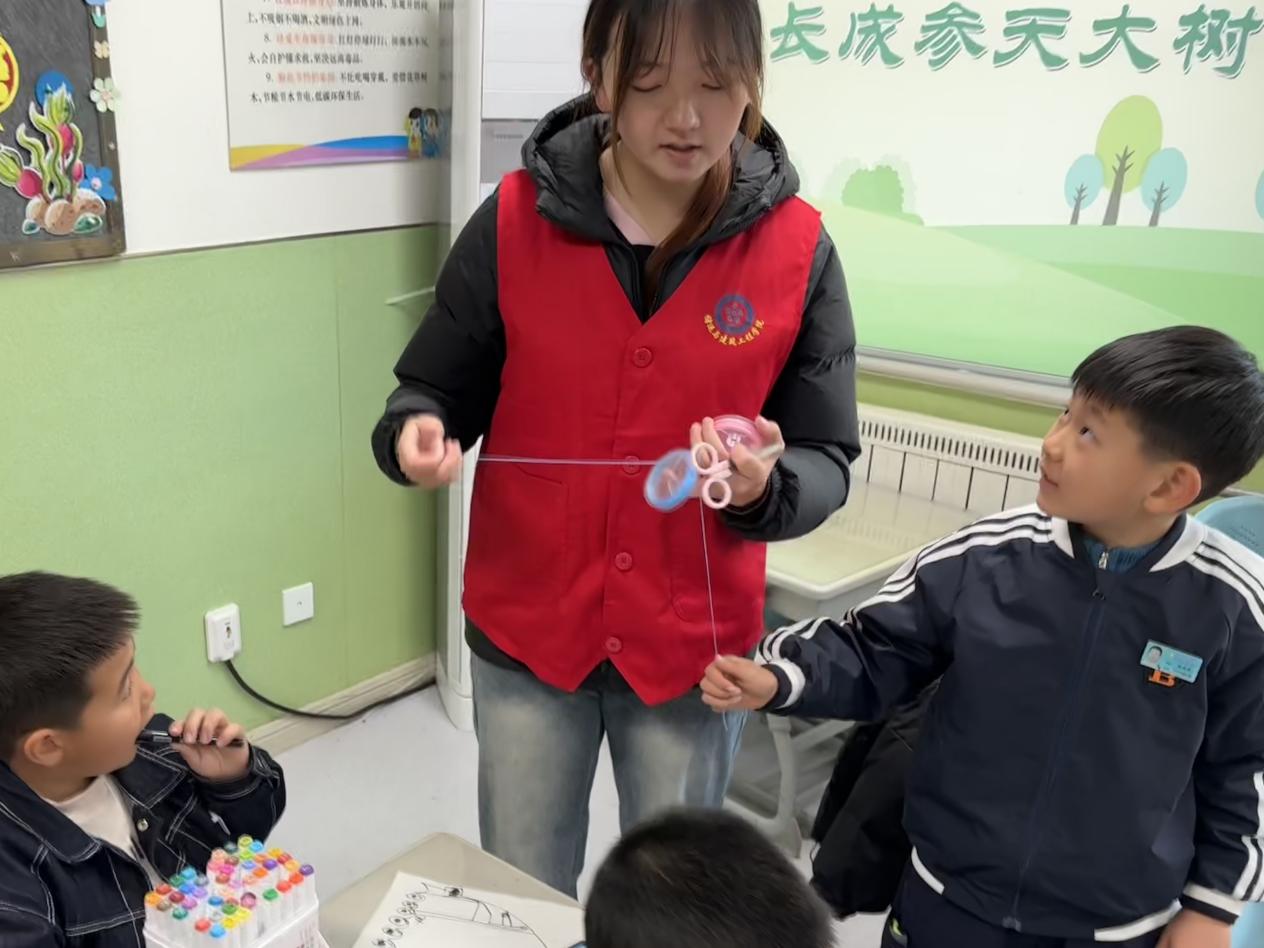 为传承中华优秀传统文化,推动非物质文化在学生中的普及与体验,学院召旭服务队于12月5日走进昆仑山路小学,举办了一场别开生面的“彩绳钟楼”非遗手工制作活动。本次活动是“非遗进校园”系列的重要组成部分,通过理论讲解与动手实践相结合的方式,让小学生在亲身体验中感受传统建筑文化与手工艺术的融合,增强文化认同与时间观念。