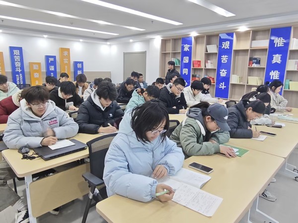 随后,王加胜围绕考试周的整体安排和核心要求展开细致讲解,重点强调了考试注意事项,提醒学生务必重视细节规范,提前做好各项准备工作,避免因疏忽大意影响考试发挥。在考试纪律方面,他结合以往典型案例,着重强调了诚信考试的重要性,明确指出违纪行为不仅会取消考试成绩,还会记入个人档案,对学业发展和未来职业道路造成严重影响。王加胜鼓励学生坚守诚信底线,以真实的学识和端正的态度参与考试,用诚信书写青春答卷。班级全体学生郑重签下《诚信考试承诺书》。
