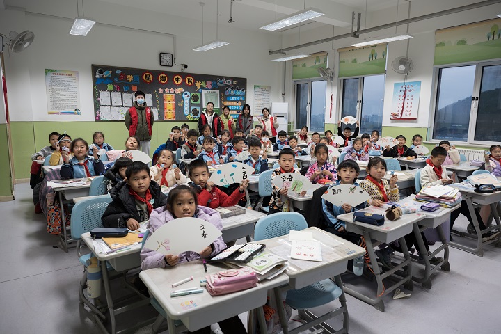 与同学们共同进行手工活动 黄镪锋摄