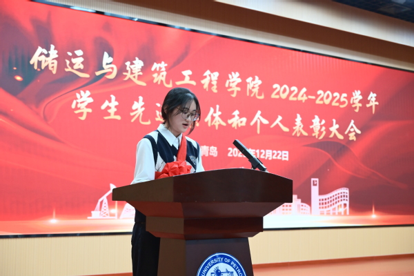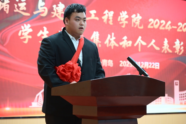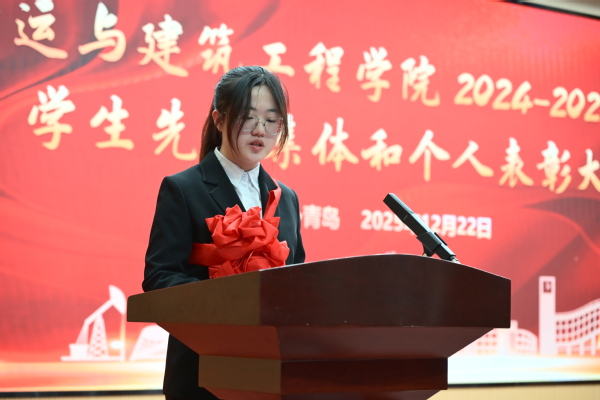 颁奖结束后,获奖代表依次发言分享成长感悟。优良学风标兵班代表、力学2301班长李倬勰讲述班级通过思想引领、全员互助体系建设,实现班级及格率、优良率双提升,班级成员共同进步、全面成长的奋斗历程;国家奖学金获得者、储运2303班黄怡然分享了自己深耕专业知识、投身科研创新,连续两年斩获专业第一的奋斗故事,生动诠释了“奋斗是青春最亮丽底色”;胜利监理组织能力奖学金获得者、建环2301班隋瑞琦聚焦第二课堂实践,分享了自己从盲目参与到独立策划,在学生工作、学科竞赛、志愿服务中锤炼统筹协调能力的蜕变,向学子们传递“知行合一”的成长理念;陈财君就业奖获得者、土木2202班王添正结合企业实习经历,分享了自己从忽视就业规划到主动对接行业的认知转变,呼吁同学们以实践为基,提前锚定职业方向。