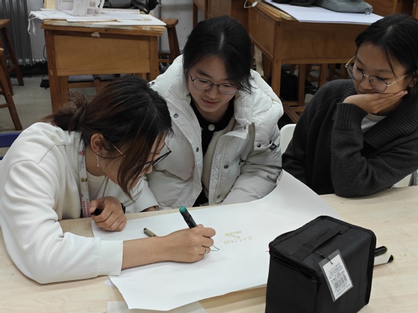 团支部成员共同绘制海报 石佳逸摄