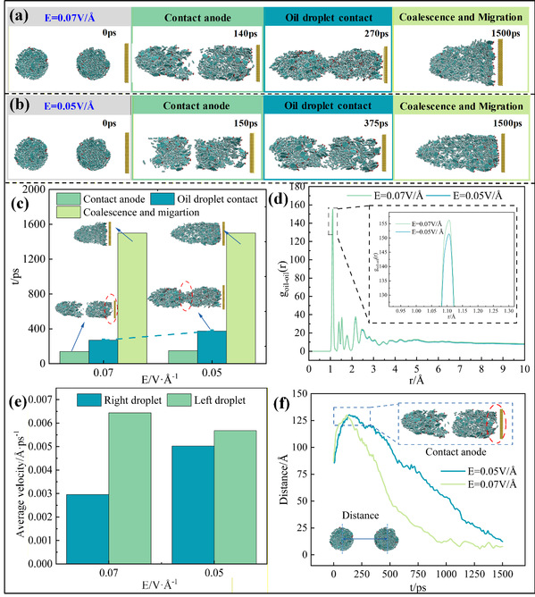 (1)阐明了电场作用下水中油滴的聚结动力学特性