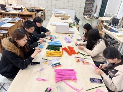 团支部成员用扭扭棒制作花朵 王家星摄