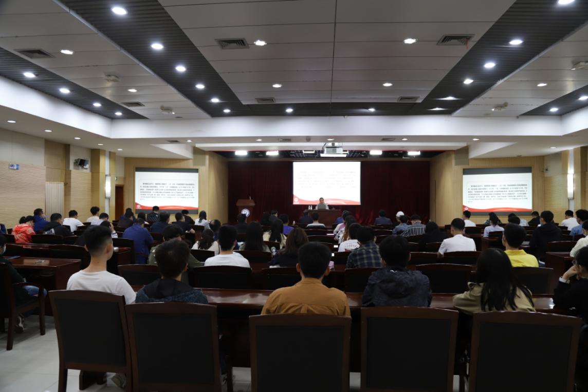 为深入开展党史学习教育,引导广大党员干部学史明理、学史增信、学史崇德、学史力行,5月21日,由ok138cn太阳集团古天乐承办的第五期党史学习教育专题报告会在逸夫报告厅开讲,马克思主义学院副教授、学校“星光”宣讲团成员王庆忠讲授《中国奇迹背后的成功密码》。报告会由学校党委学生工作部部长姚海田主持,储建学院党委书记高平发及学院师生党员代表80余人参加报告会。
