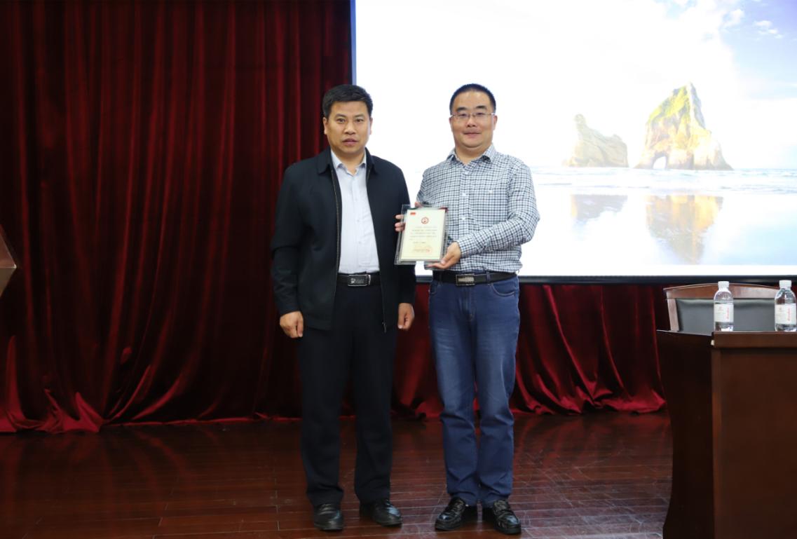 报告会后,姚海田部长代表学校党史学习教育领导小组向王庆忠副教授颁发了宣讲纪念牌。