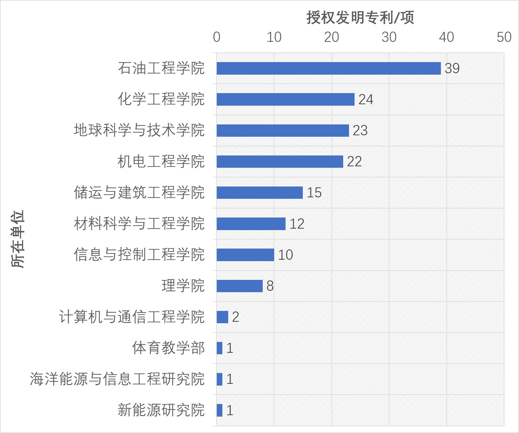 授权中国发明专利中,113件由专利代理机构办理,约占授权发明专利的72%。我校与石油石化企业等单位共有权利的中国发明专利9件。